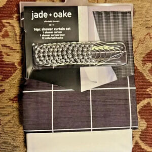 Jade + Oake 14pc Modern Chic Grid Shower Curtain Complete Set - Black