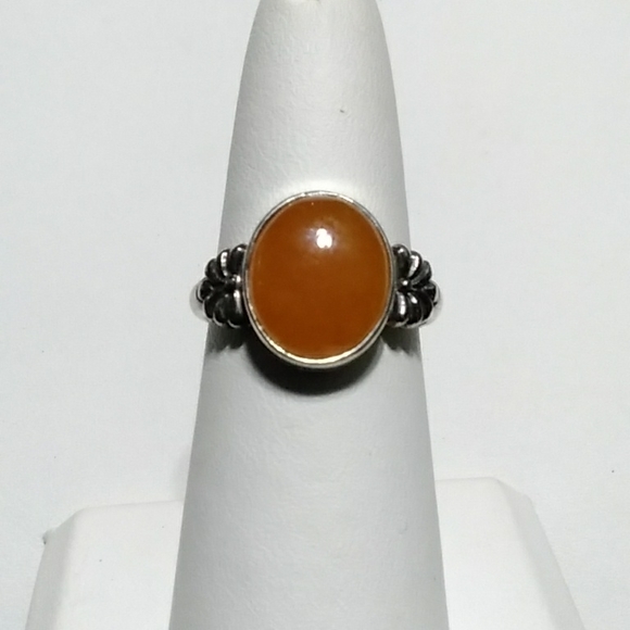 925 sterling silver artisan crafted genuine orange jade ring. Never worn.