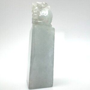 This exquisite jade stone seal features an intricately carved foo dog, a hallmark of traditional Chinese artistry. Ideal for collectors or as a decorative piece.