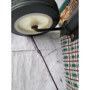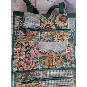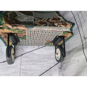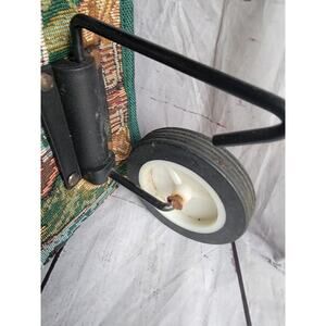 Jade Tapestry Tote Bag Rolling Foldable Collapsible Farm Ducks Sunflowers Green. Other than some rust on the bottom part with the wheels it is in good condition.