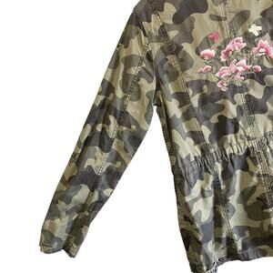 Jade and Ivory Camo Flower Embroidered Cinch Waist Jacket Size Medium