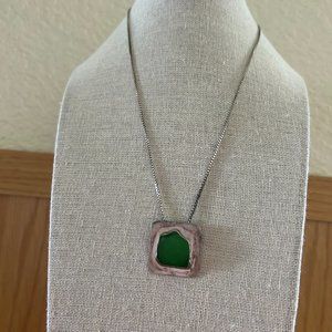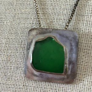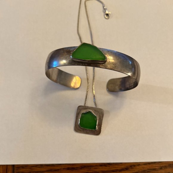 Jade and silver pendant necklace and bangle bracelet Set