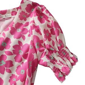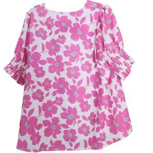 Jade by Jane Floral Pullover Blouse Top, V-neck, pink & white, sz 2X Puff Sleeve