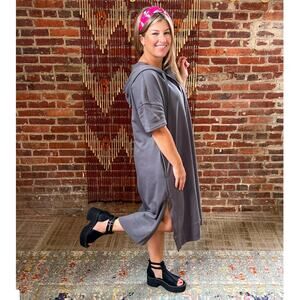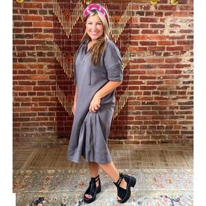 Jade by Jane Think About Me French Terry Midi Dress - Charcoal - Plus Size 3X