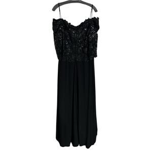 Jade by Jasmine Black Sequin Embellished Mesh Elbow Sleeve Dress Womens 14