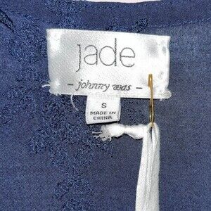 NWT Jade by Johnny Was Sapphire Blue Maxi Dress Embroidered Button Front Bell Sleeve Semi-Sheer Womens Size Small