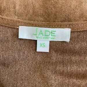 Jade by Melody Tam XS Faux Suede Tan Ruffle Sleeve V-Neck Top Blouse