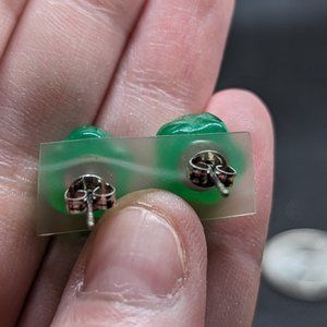 I believe these are Jade but I could be wrong so I priced them a little lower than I would if I was certain they were jade. They're stone and cold to the touch, carved flowers/roses in deep green. Sterling silver posts.