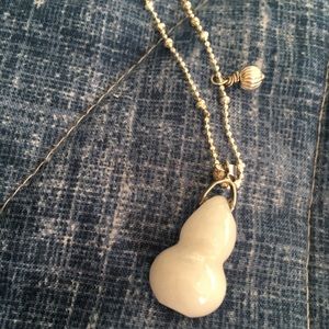 Sterling silver necklace with genuine jade gourd pendant and a sterling silver bead charm. Jade color is a pale celadon green.