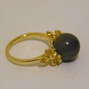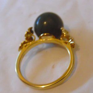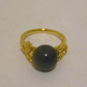 Jade of Yesteryear Dark Green Jade Gemstone Ball Floral Ring Size 8