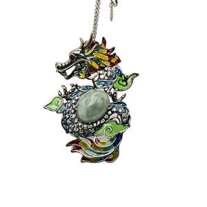 Jade of Yesteryear Womens Necklace Sterling Green Jade Dragon Plique a Jour