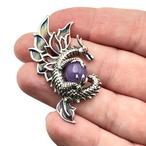 Jade of Yesteryear Womens Necklace Sterling Purple Jade Dragon Plique a Jour