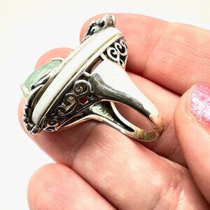 This stunning Jade of Yesteryear women's ring features a green jade dragon delicately set in sterling silver. The unique design, size 6.5 and weight of 17 grams make it a standout piece.