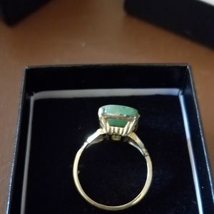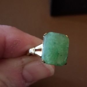 Very pretty green jade ring in gold plate over silver. Too small for me or else I would keep it. Jade brings good luck and good vibes! Size 6.