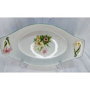 Jade Lily by Shafford Fine Porcelain Baking Dish Flowers Oblong 13”x 7”x 2”.
