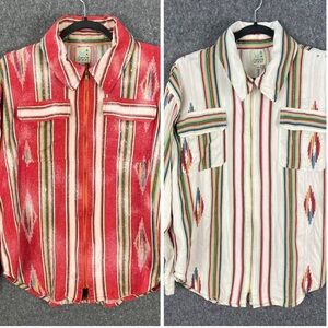 Lot of 2 Jaded Gypsy Aztec Western Jacket Boho Southwest Serape Zip Shirt S/M Sunset Vibe
