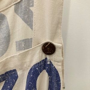 Flowy overall with floral and wording print, back pockets, vintage look, gypsy, festival, summer look.