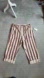Darling pants, striped in a creamy white and merlot color. I wore for about 2 hours and decided I needed the smaller size. I feel these would best fit a size 12 and up! Washed in Ecos and hung to dry and put the hangtag back on for you.