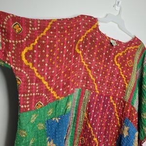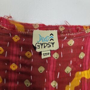 Jaded Gypsy red green hippie oversized patchwork pockets shawl poncho