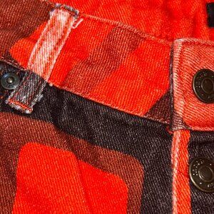 Jaded London Boyfriend Fit Red Black Smoke Print Wide Leg Button Fly Jeans 28X33