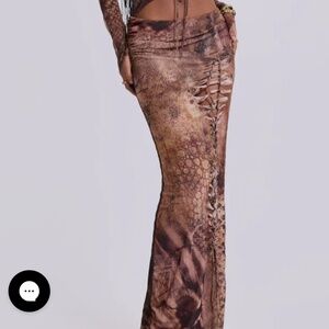 Abstract animal print mesh dress, shoulder twists, maxi dress, macrame detailing. Very pretty dress only worn once for a few hours.