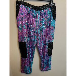 Jaded London Revolve Sequin Jogger Style Colorful Bright Elastic Waist Pants M