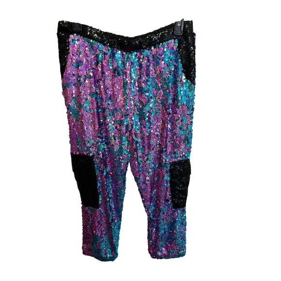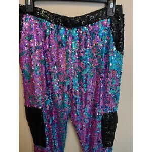 Jaded London Revolve Sequin Jogger Style Colorful Bright Elastic Waist Pants M