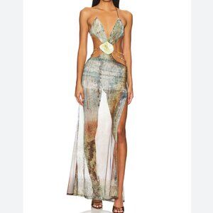 Jaded London Vida Backless Maxi Dress With Shell Trim in Multi size small