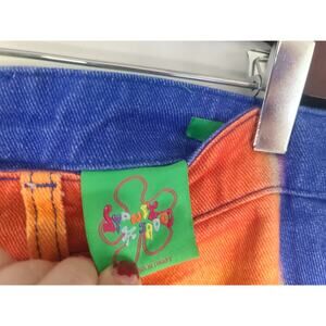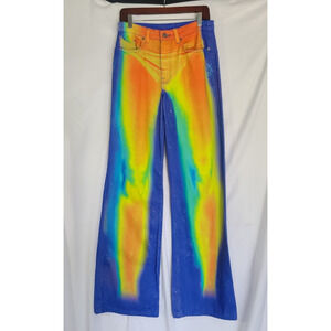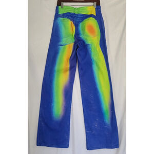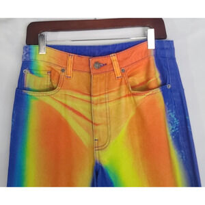 The Jaded London X Sydney Carlson Heatmap Loose Straight Fit Touch Me Jeans in US size 26 feature a unique heatmap pattern in a rainbow/multicolor design. Made from 100% cotton denim with a medium fabric wash, these high-rise jeans have a relaxed fit and straight leg style. With a waist size of 28 inches and an inseam of 32.5 inches, these jeans are perfect for the summer, fall, and spring seasons. They also include pockets for added convenience and style.