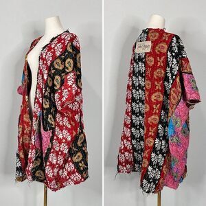 Jaded Gypsy Kantha Kimono OS Frayed Edges Boho Festival Cottage Artsy Rustic