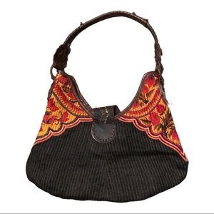 Jadetribe Textile & Leather Braid Strap Hobo Bag . Snap closure. Several inside pockets one zippered.Beautiful handiwork. Amazing bohemian vibe straight from Thailand. Great preowned condition! Floral multicolored. External colored stitching. Jade colored stone on leather closure piece.
