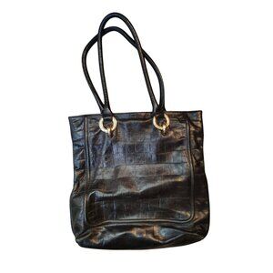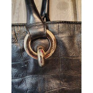 Jaeger Black Leather Faux Croc Purse Handbag Double Top Handle Strap, Vintage