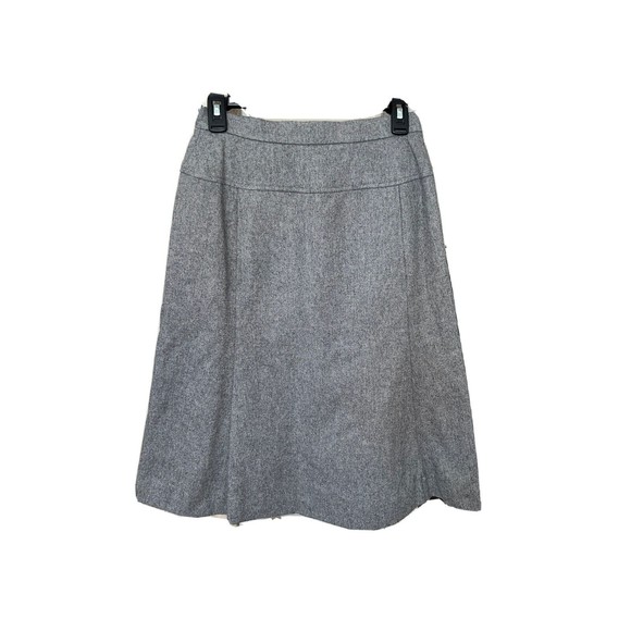 Elevate your wardrobe with this stunning Jaeger London vintage A-line midi skirt. Crafted from 100% wool in a beautiful gray hue, this skirt features a high waist and a flattering A-line silhouette. The skirt is fully lined and has a zip closure for easy wear.