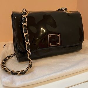 Beautiful vintage flap shoulder bag from Jaeger London, with gold tone chain & leather strap. Excellent gently used condition. All angles pictured. Comes with original duster bag.