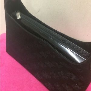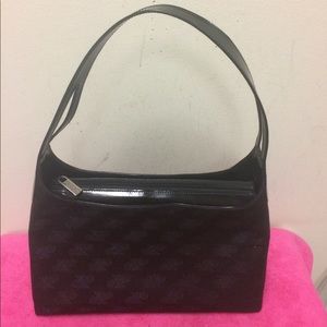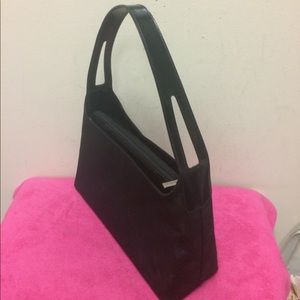Made in Italy Jaeger in leather and fabric with 4 bottom silver tone footstands. Top zipper closure with brand pull tab. Very clean! 11"x7"x4" Item# 927501