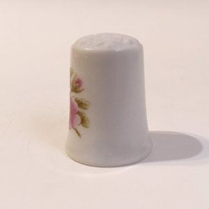 Jaeger Thimble Snowflake Porcelain Pink Flowers Green Leaves Bavaria Germany