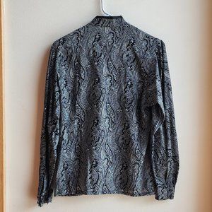 Jaeger Vintage 100% Wool Paisley Button Down Shirt Size Small. Rare style! Higher Asian style collar. 100% wool. Soft and silky. Great vintage style. Excellent condition.