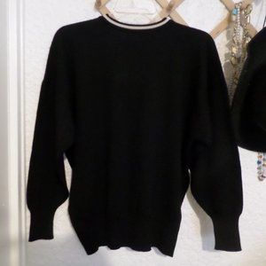 Beautiful black & ivory vertical stripe sweater from British maker Jaeger