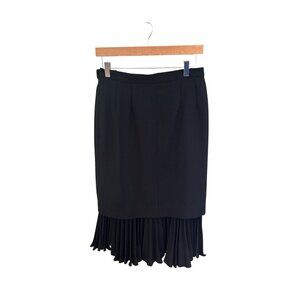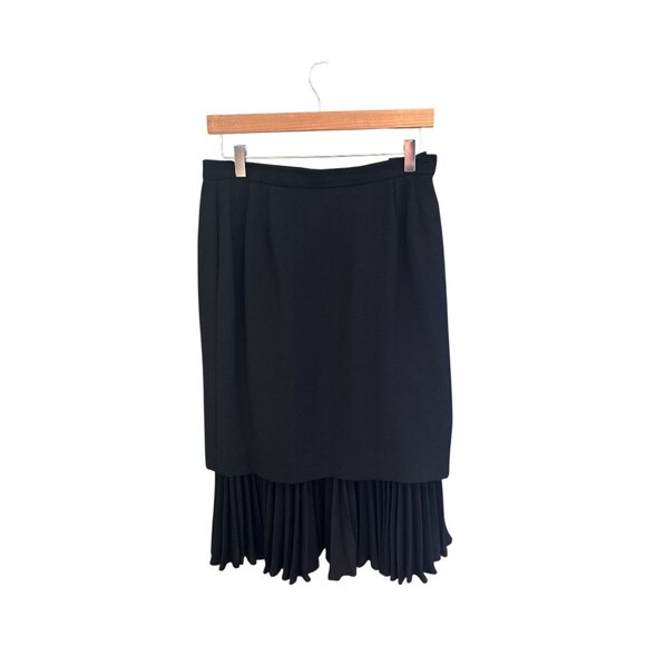 Jaeger Women’s Black Pleated Hem Midi Skirt Size 12 Made in Great Britain Wool B