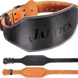 Jaffick Men's Leather Weight Lifting Belt Size S. Their leather weightlifting belt has received a lot of praise from fitness enthusiasts. The widened structure design can break your personal record more easily during training. For daily training, this is the perfect belt. A tight belt can hurt the spine and back muscles. Their suede pads keep you away from any sports injuries! Pre-owned.
