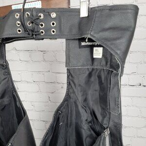 Jafrum Motorcycle Gear Black Belted Adjustable Lined Chaps Biker Pants Size XL