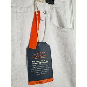 White stretchy denim jeans with a straight leg design, featuring a comfortable 29" inseam. Perfect for casual outings or dressing up for a night out. New with tags for a fresh, unworn look.