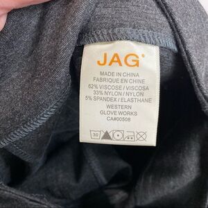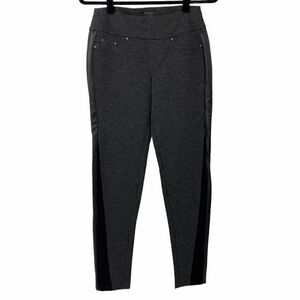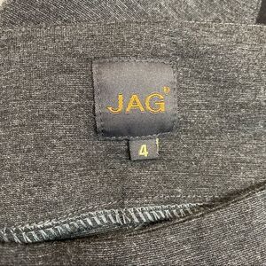 Jag Gray Black Faux Leather Leg Stripe. Size 4 with measurements in the pictures. Gently used condition with no rips or stains.