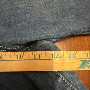 The Jag Jeans Pull-On Stretch Denim Women's Size 14 Dark Wash Mid Rise Tapered jeans are a stylish and comfortable choice for any woman's wardrobe. Made from a blend of polyester, spandex, and cotton, these jeans offer a flattering fit with a tapered leg and mid-rise waist. The dark wash and solid blue color make them versatile for all seasons, while the stretch fabric ensures ease of movement. With its classic straight leg style and quality craftsmanship from Jag Jeans, these jeans are a timeless addition to any casual outfit.