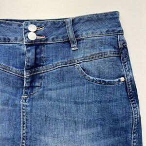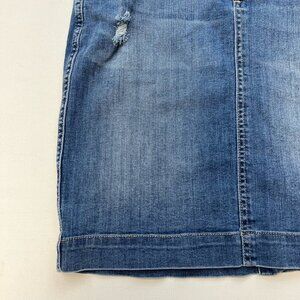 Jag Jeans Womens Denim Skirt Blue Distressed Faded Whiskered Double Button S