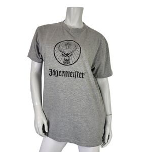 Jagermeister Unisex SZ Large Tee T Shirt Grey & Black Logo Bartender Server Bar