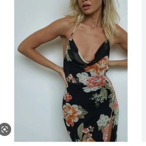 Jagger And Stone, Black + Floral Midi Dress, Halter Tie Neck, So Sexy Leg Split