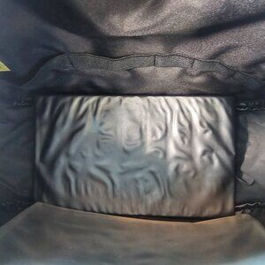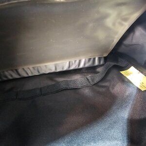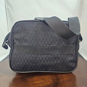 Removable Extendable Shoulder Strap. Jaguar Embossed Tag. Black Diamond print design. Removable Inner Clear Zip bag. Multiple inner elastic bands to secure items. Front Zip Pocket. 4 bottom attached knobs to protect the bag's bottom. Bottom approximately 11 1/2 x 6 inches. Approximately 9 inches tall and 11 1/2 inches wide.