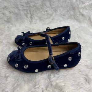 Elegant navy shoes with bow detail. Sparkling gem accents. Perfect for special occasions. Some wear as pictured. Size 8