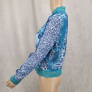 Jaipur Blue Leopard Animal Floral Pattern Mesh and Lace Lightweight Jacket